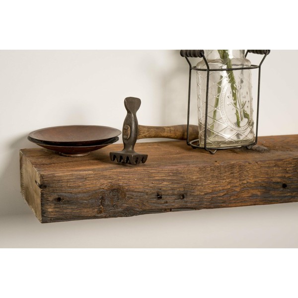 Modern Timber Craft Reclaimed Wood Floating Wall Shelf | Solid Rustic American Barnwood with Floating Shelf Brackets | 2.75" Thickness | 30" L x 5" D, Unfinished