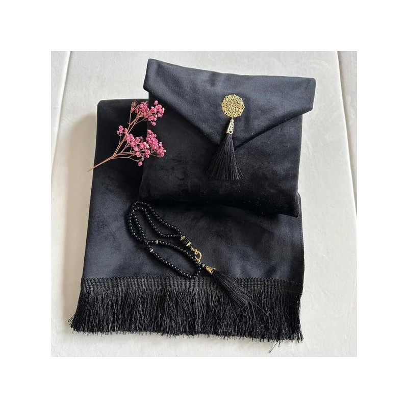 MODERN WALL ART Travel Prayer Mat with Prayer Beads and Pouch (Black, 40 x 26 inch, Rectangular, Travel)