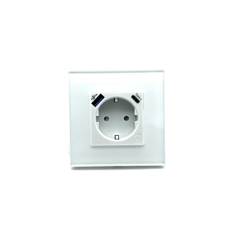 Modernes Touch-Wandschalter-Panel mit Stecker und USB-Port und USB-C-WiFi, Weiß