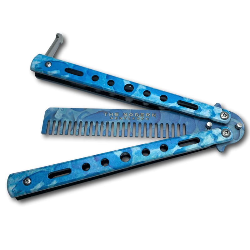 ModernGentleman Grooming Comb, Butterfly Practice Trainer Design, Folding Portable Hair Styling or Practicing Tricks (Ocean)