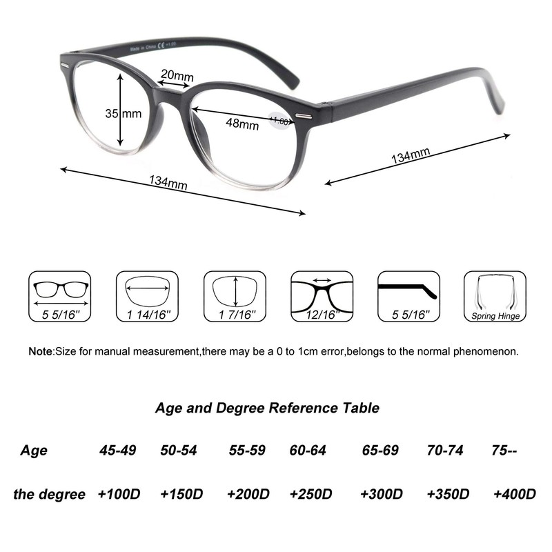 - ☀Dimension: Lens width: 48mm,Lens height: 35mm,Frame width: 134mm,Bridge: 20mm,Temple length: 134mm