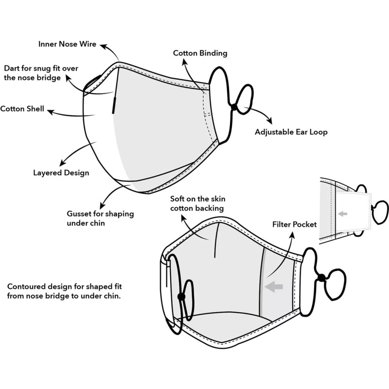 - Nose wire and adjustable ear loops to minimize gaps and ensure a secure custom fit