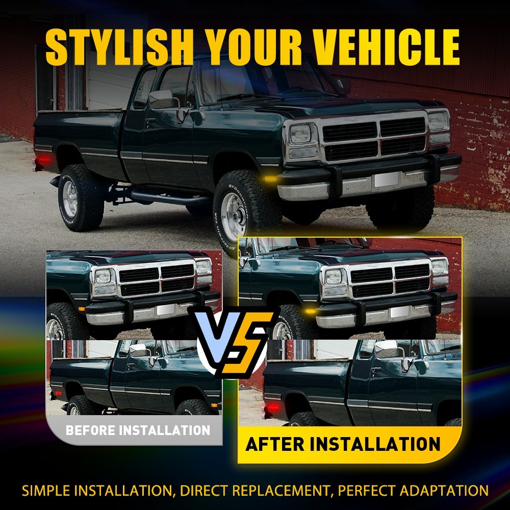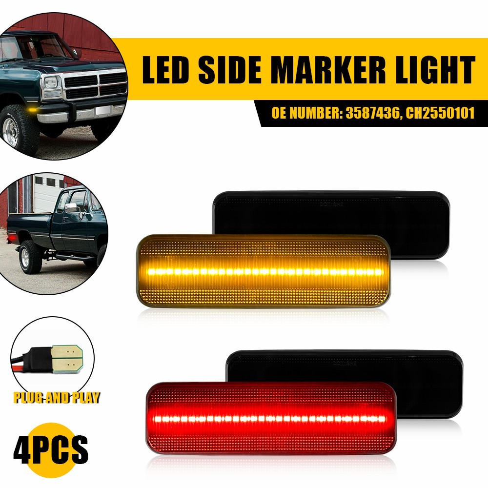 modified-car-world Amber Smoke LED Red Rear Front Marker Fender Side For Light Dodge D100 D150 D250