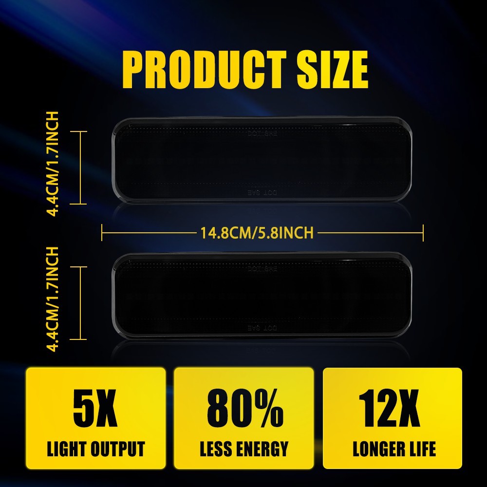 *Exquisite Appearance: Attractive side light is 1:1 design according to the original model for fitting the car perfectly. *High Brightness: Powerful LEDs is designed for visually striking and visibility enhancing. *Water-Proof: Ultrasonic technology makes waterproof ability stronger to ensure your driving safety (waterproof grade: IP67). *Stable Performance: Longer service life (more than 50,000 hours) with friendly customer support for bringing you satisfied shopping experience. *Less Consumption: Better energy-saving, better environmental protection.
