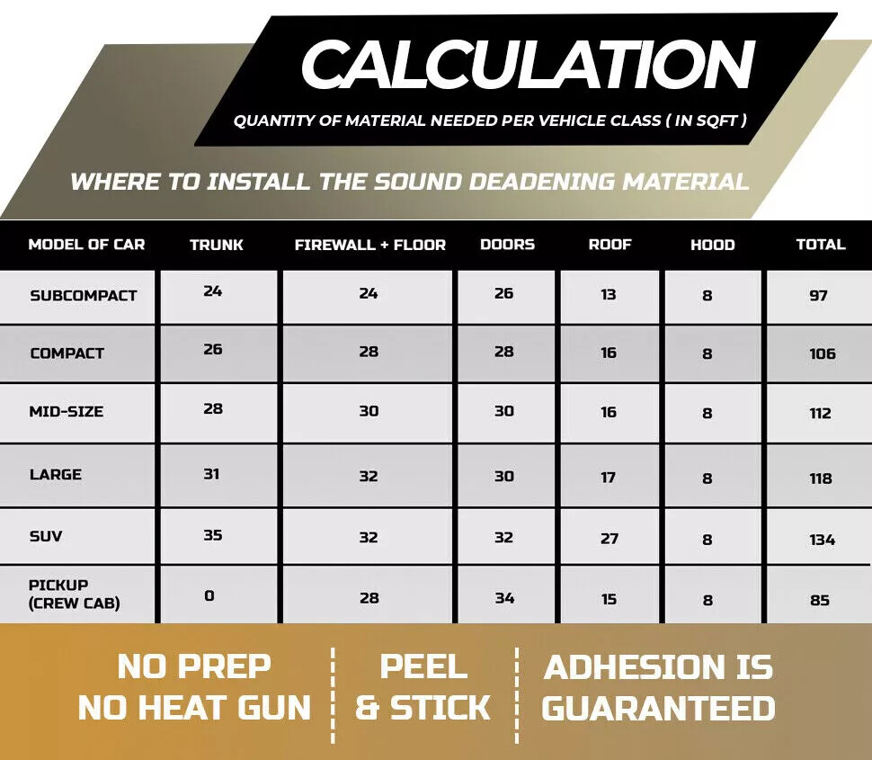 Package included | 10Sheets 16" x 10" Heat & Sound Deadener |