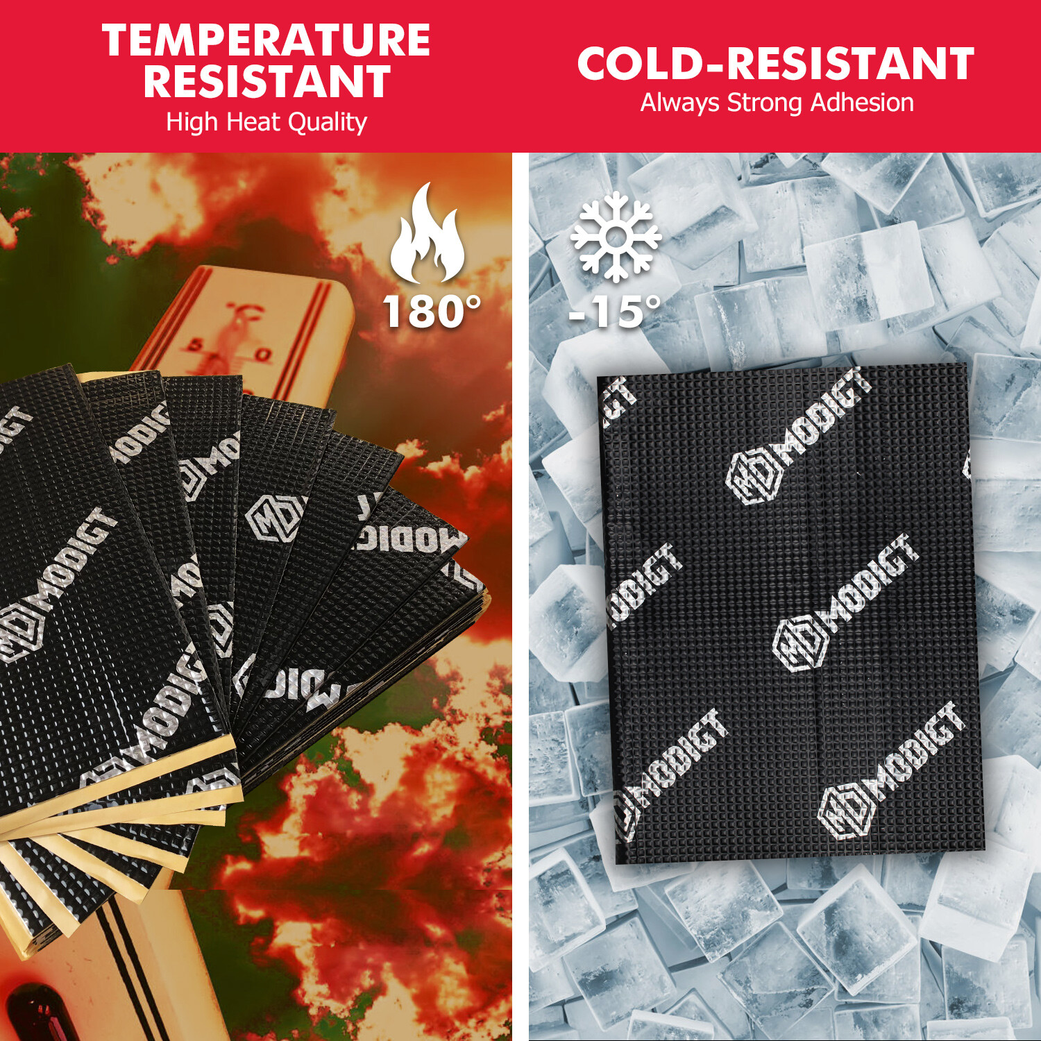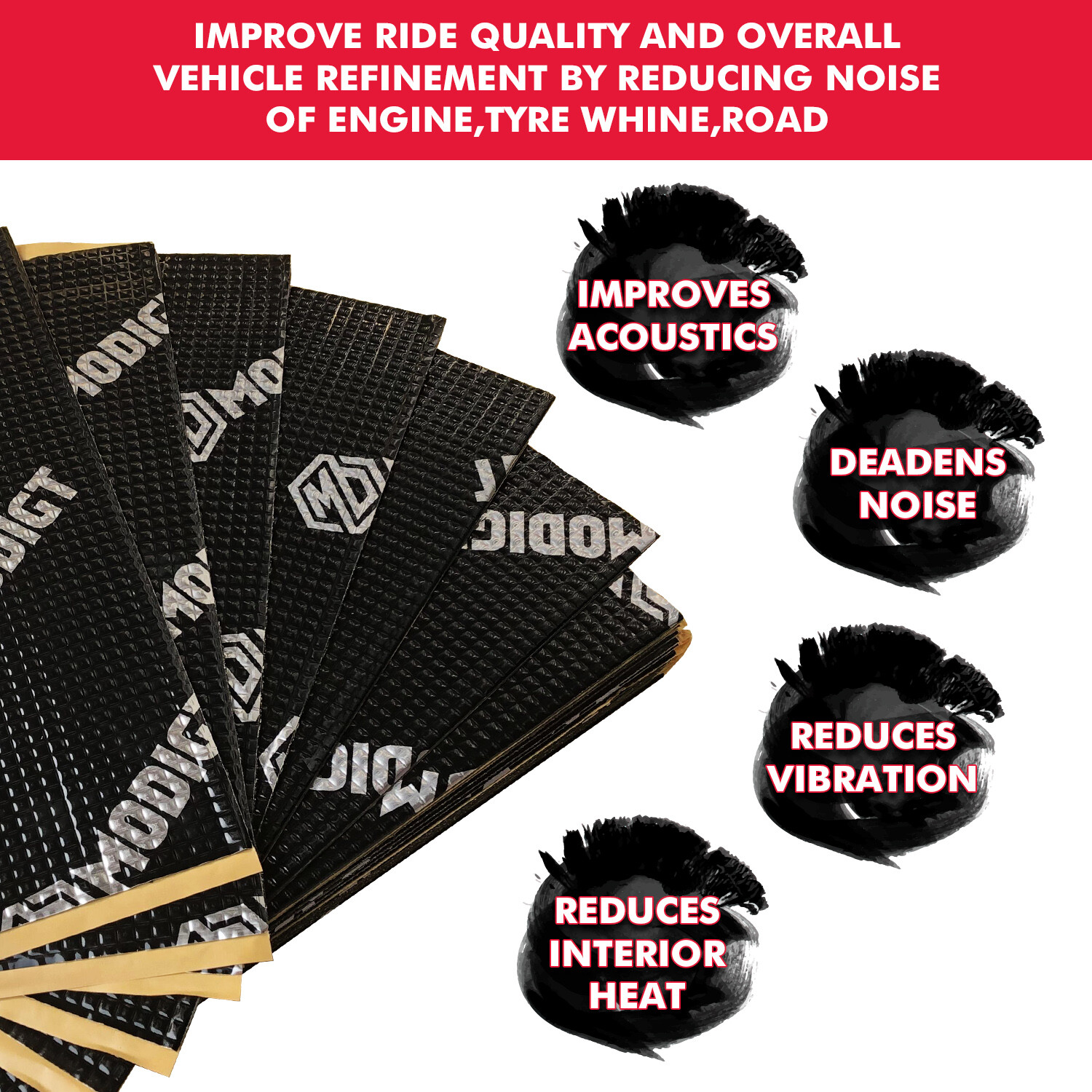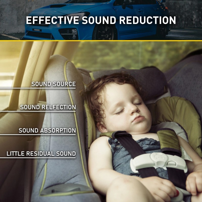 KILL: Road Noise, Engine Noise, Panel Rattle/resonance, and Outside Noise. IMPROVE: Driving Experience and Speaker sound Levels and Quality. ADVANTAGE: Heat-resistance, Reinforced/Crush Resistant, Mildew&Mold Resistant, Water resistant, Non-toxic