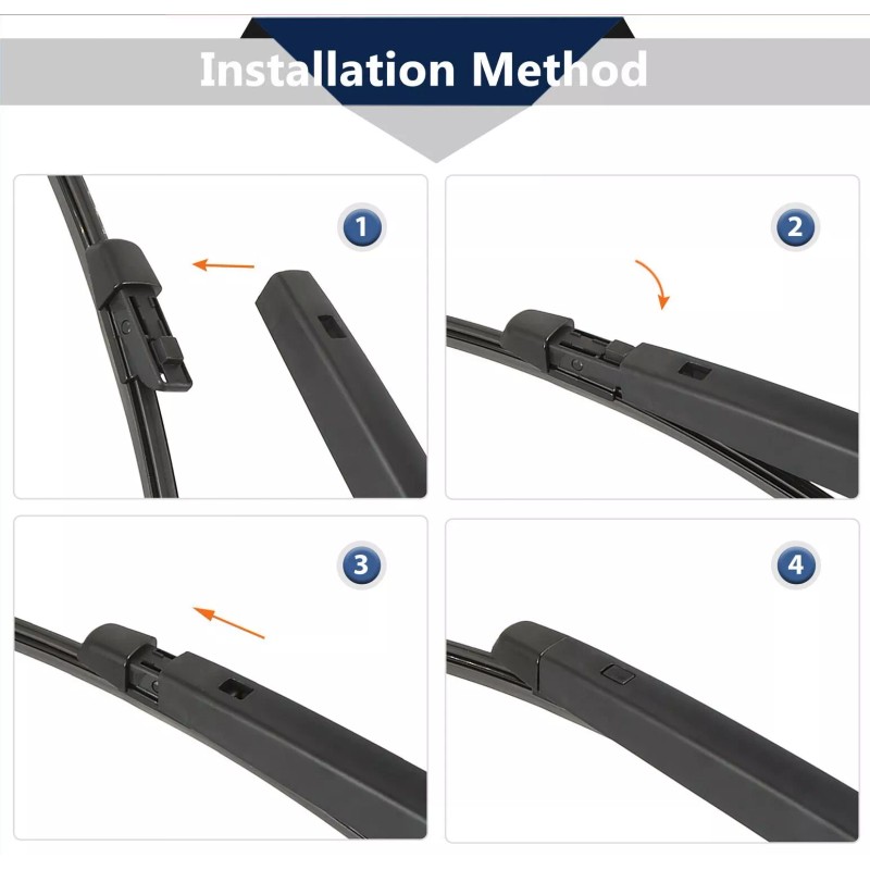 The rear wiper blades with coated wiping edge feature wear resistant natural rubber to ensure smooth and quiet operation,and extend its long service life.