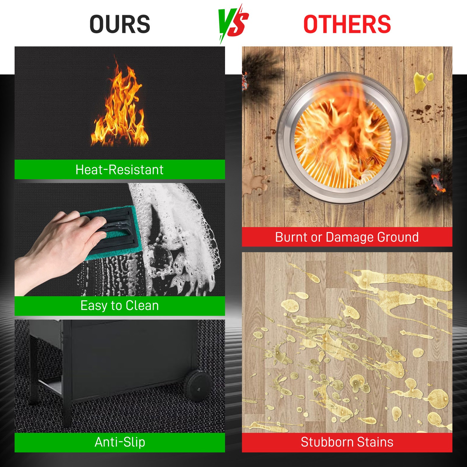 - 48''×30'' grill mat, which can protect the area below the fireplace from bursting embers or fire. It keeps the environment hygienic and tidy after an outdoor barbecue, This minimizes the cleaning effort, enabling you to fully relish your outdoor experience.