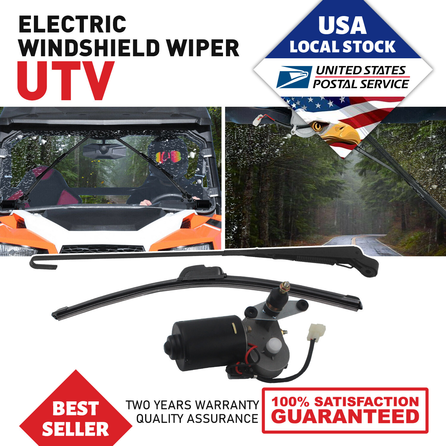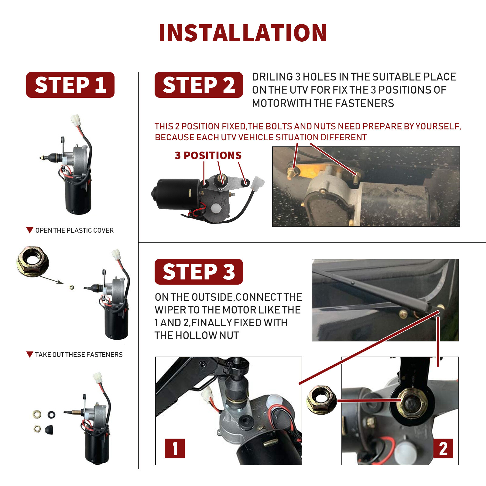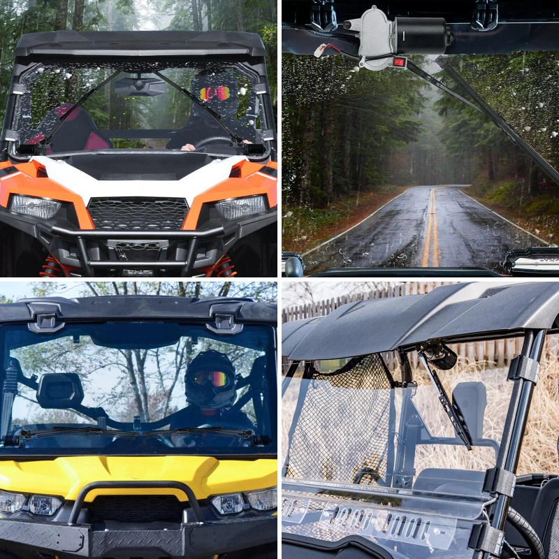 UTV 12V Electric Windshield Wiper Motor Kit for Polaris RZR Kawasaki Hard Coated