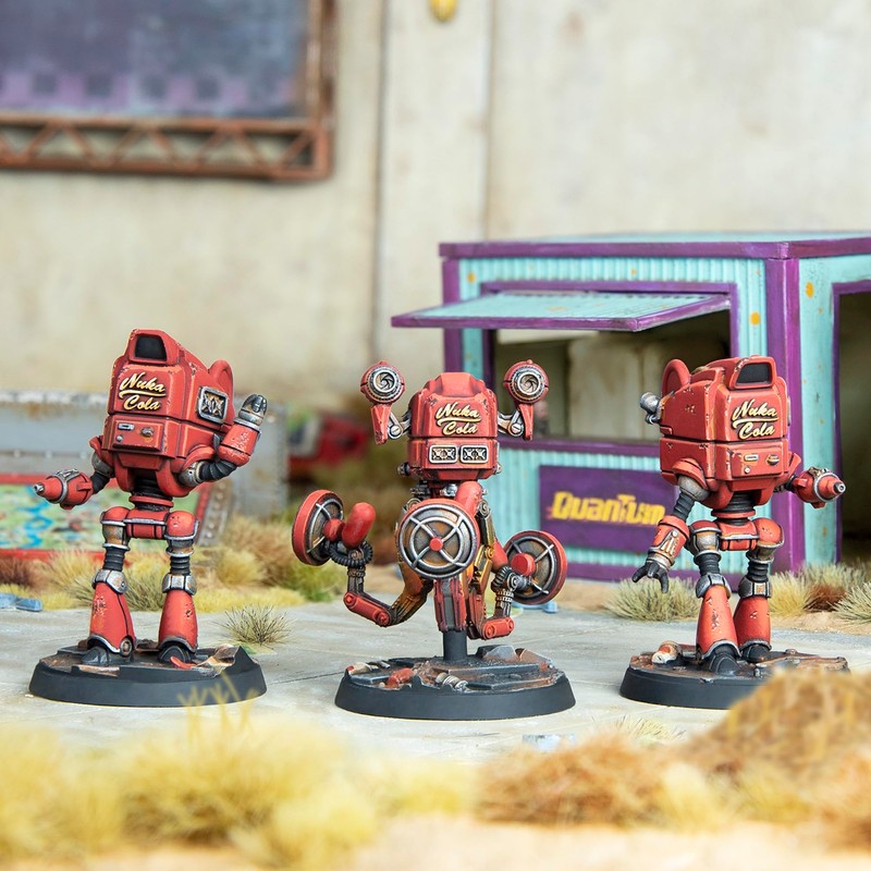 Modiphius Entertainment: Fallout: Wasteland Warfare - Robots: Starlight Theatre Staff -3 Figures, 32mm Unpainted Resin RPG Miniatures, Nuka World Wave