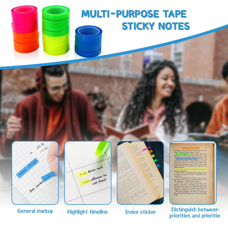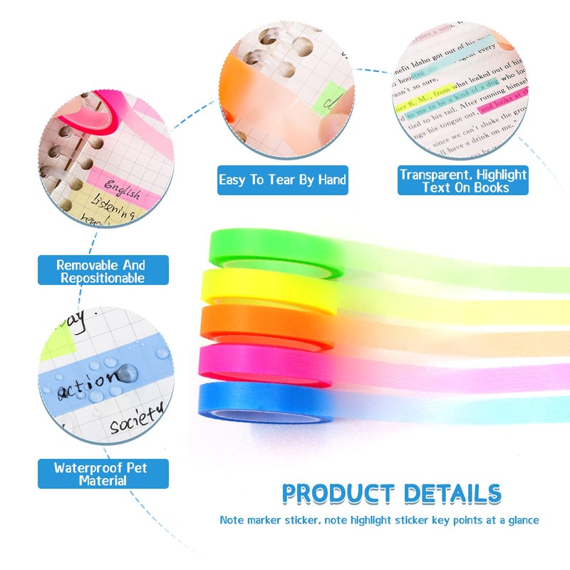 - REMOVABLE & REUSABLE The highlight tape is moderately sticky and won't fall off. And they are easy to remove and reposition, won't tear your books or leave annoying sticky residue. Compared to highlighters, they do not damage books and keep your books intact.