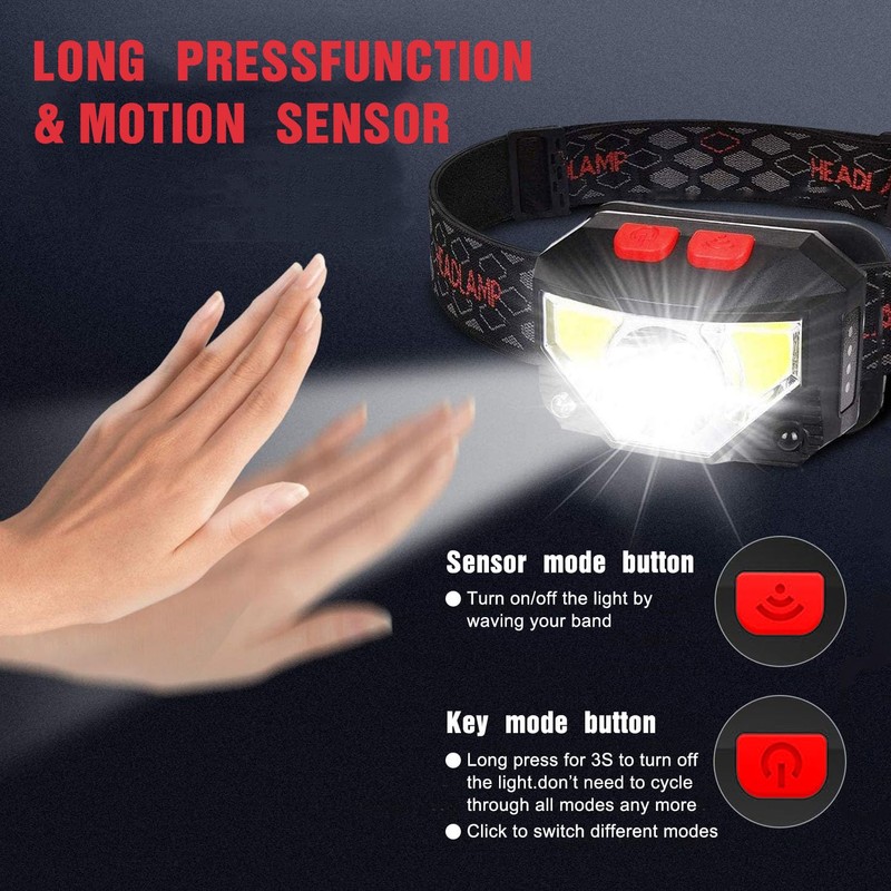 MODOAO Headlamp Flashlight,6 Modes Super Bright LED Rechargeable Headlight with White Red Light,Waterproof Motion Sensor Head Lamp,for Head Lamp Light for Outdoors Emergency (1 Pack)
