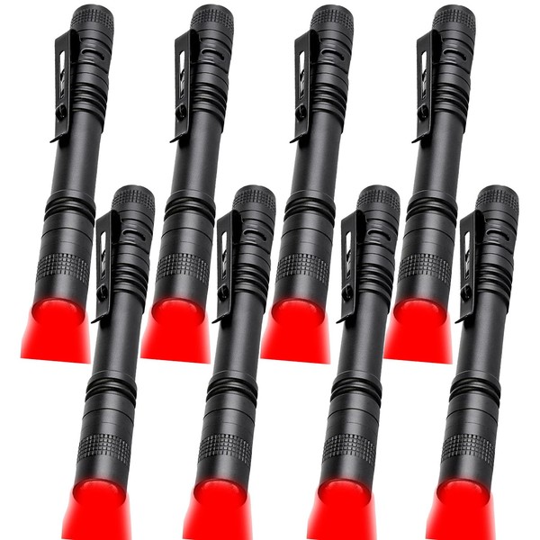 MODOAO Red Light Flashlight Red LED Flashlight Red Light Pen Light Flashlight with Clip Super Bright Red Flashlight Red Torch and Single Mode Lighting for Outdoor Use (8Packs)