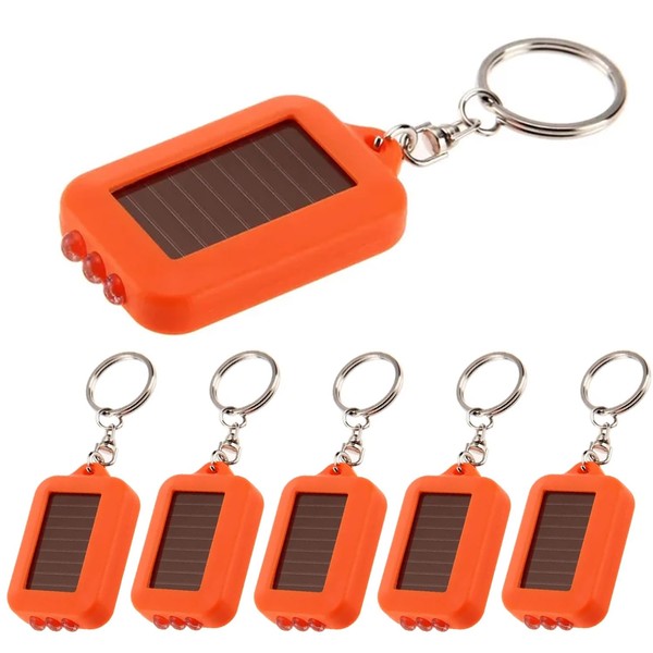 MODOAO Solar LED Keychain Flashlight 5 Pack Portable Small Pocket Light Mini Torch Outdoor Hiking Bag Lock Key Ring Light (orange)