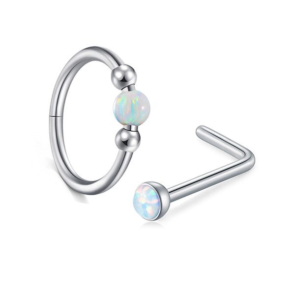 - [Item Contain]: opal nose ring set include : 1pcs opal nose hoop + 1pcs opal nose stud