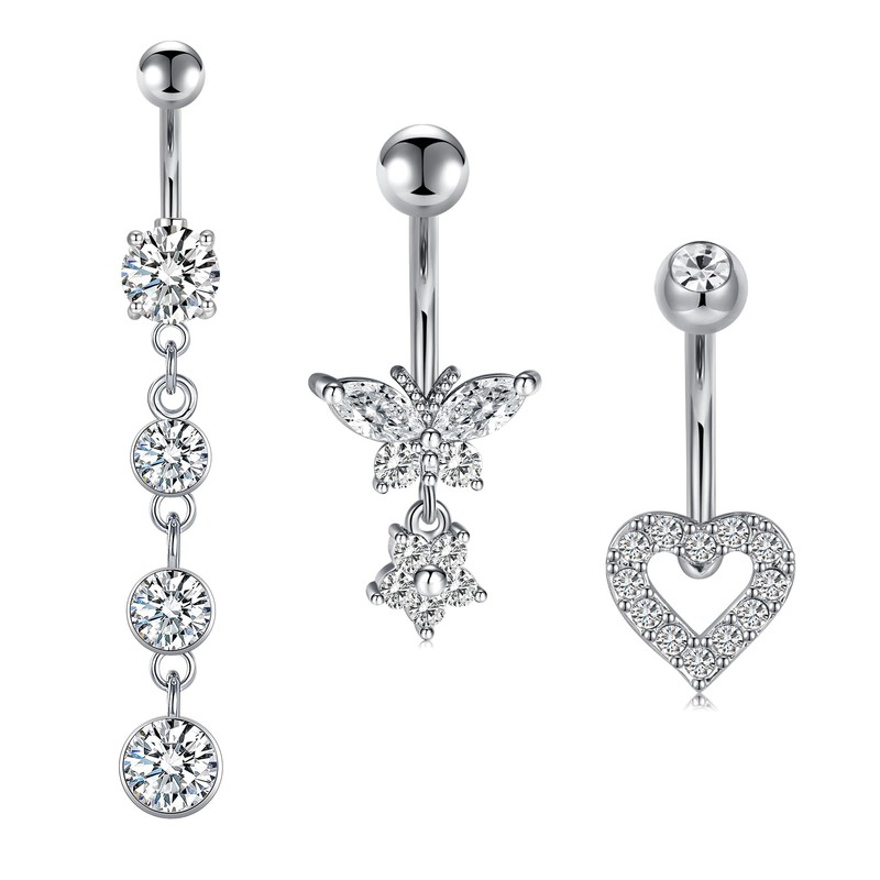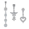 - [Item Contain]: total 3pcs belly rings, include 1pcs dangle belly button rings + 1pcs belly button ring butterfly + 1pcs heart belly button ring