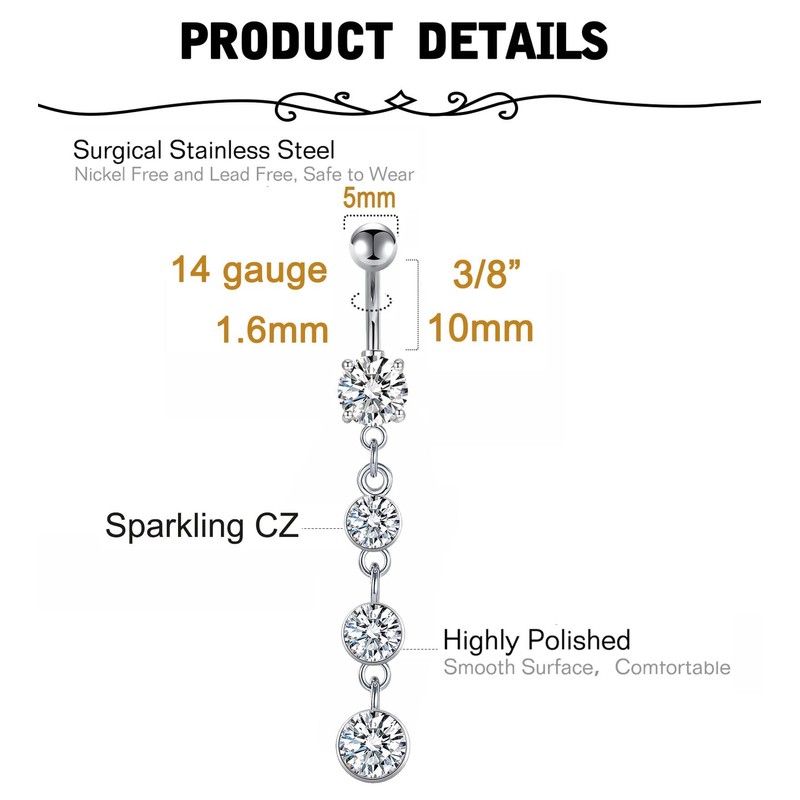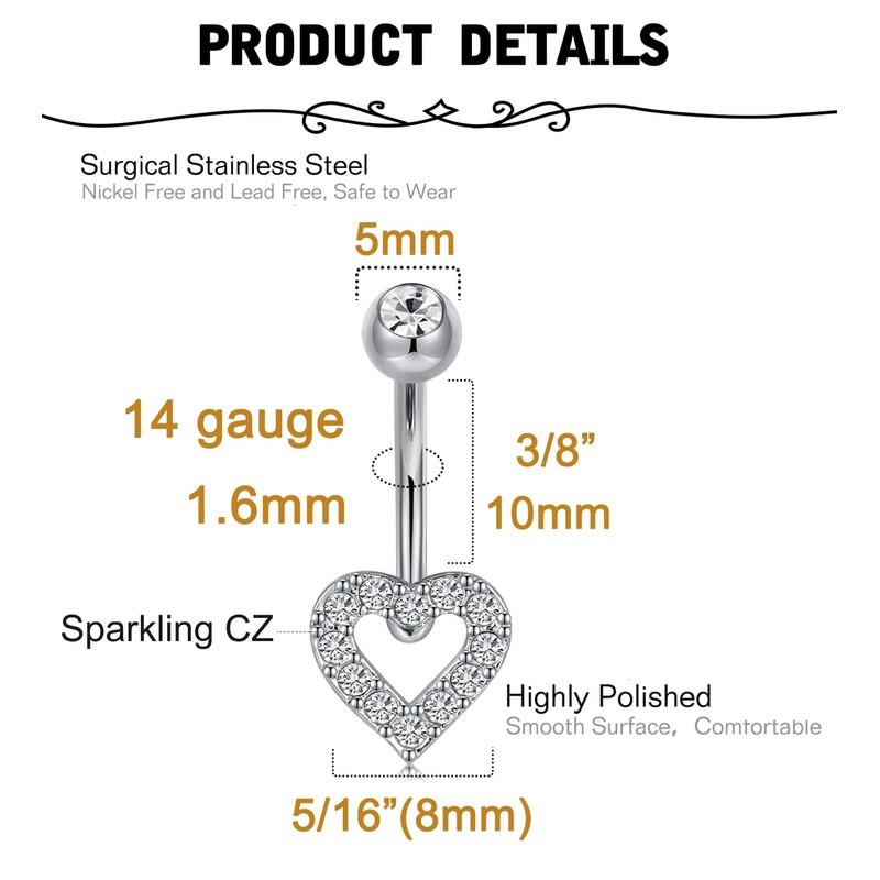 - [Material]: Belly button ring is made of high quality stainless steel; Highly Polished surgical steel belly button ring, Smooth Surface dangly belly button piercing, surgical steel belly button rings are comfortable for long time wear.