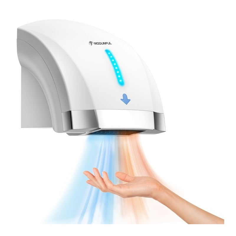 - Material : The automatic compact hand dryer is durable for a longer life because of its premium ABS material. If there is any problem, modunful customer service always be here to offer you satisfying help within 12 hrs.