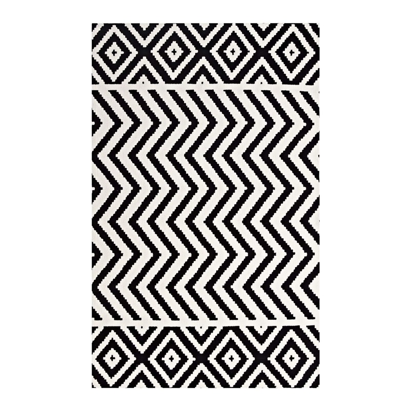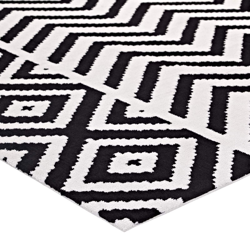 Modway Ailani Geometric Tribal 8x10 Area Rug With Diamond And Chevron Design in Black and White