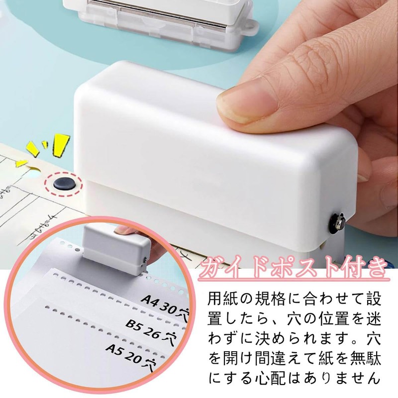 - Compatible with A4/B5/A5 Paper: A hole punch can be used with 3 types of paper at the same time. Easy to use and easy to use even for students. Easy to use with 6 holes at a time. Easy to loosen up copy or favorite paper Great for organizing documents. It can be operated with one hand, so it can be easily used by women, elementary school students, etc