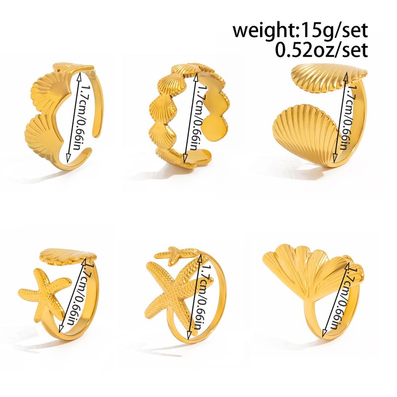 - 2. Versatile Set: This exquisite gold rings set includes 6 unique pieces, each designed with stunning starfish and shell motifs, making it a good addition to any jewelry collection.