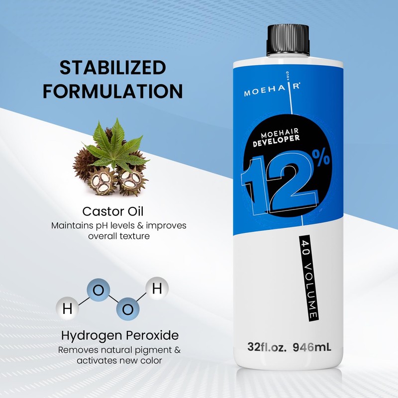 - ✔️ PROFESSIONAL-USE 40 VOLUME DEVELOPER — Moehair volume 40 developer is a professional-use product, meticulously crafted to deliver vibrant and long-lasting hair color. Its creamy, non-drippy consistency ensures easy application. It is ideal for vibrant and long-lasting hair color. The cream peroxide developer 40v offers high lifting action. Opt for open-air processing when using a 40 volume creme developer to prevent over-processing and undesirable results