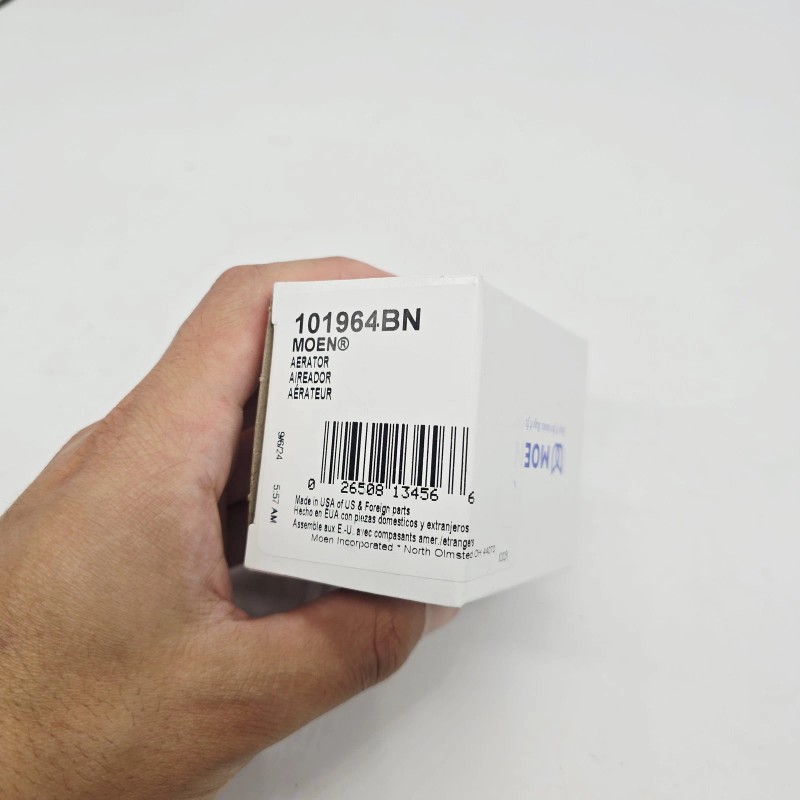 Factory sealed Moen packaging with visible brand labeling and barcode