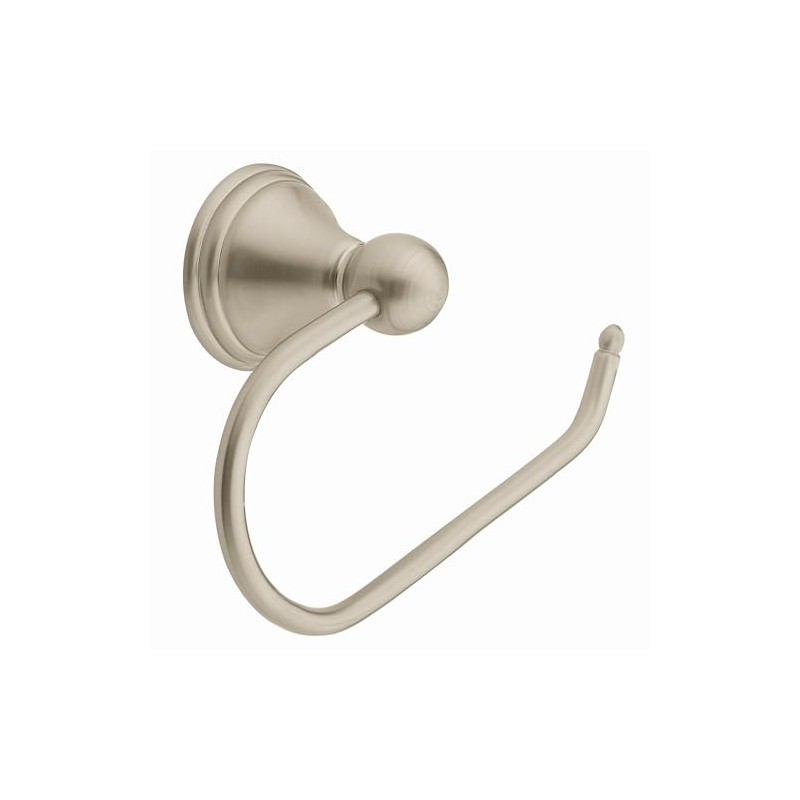 Bring a simplistic, low-key look to your bathroom with the Moen Preston Paper Holder. This European-style paper holder features a convenient open-arm, single-post design and includes everything you need for easy installation. The Moen Preston Paper Holder complements most bath decor. The Spot Resist brushed nickel finish resists fingerprints and water spots to keep your bath looking cleaner.