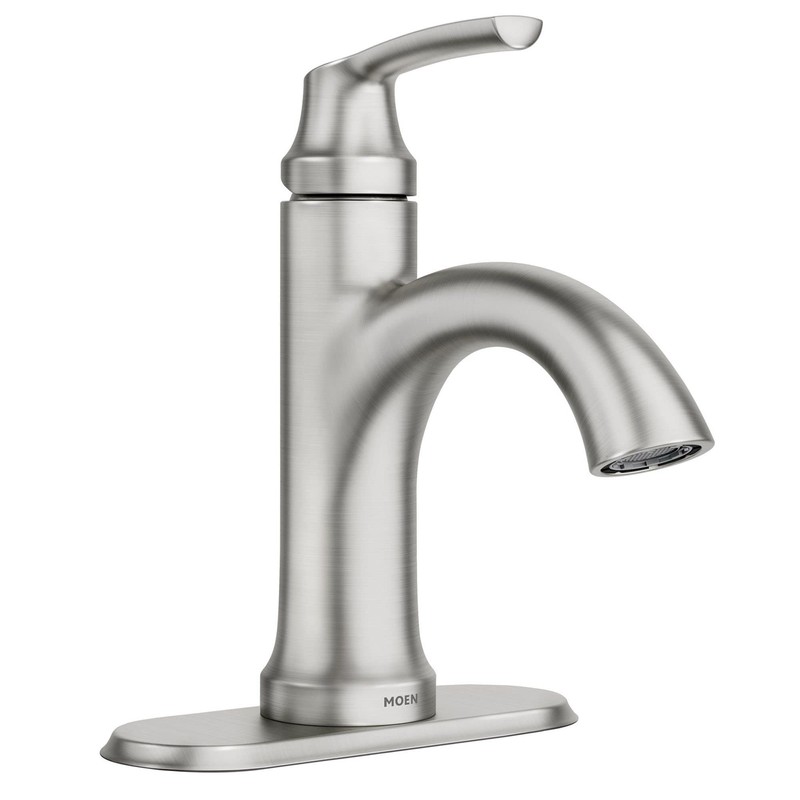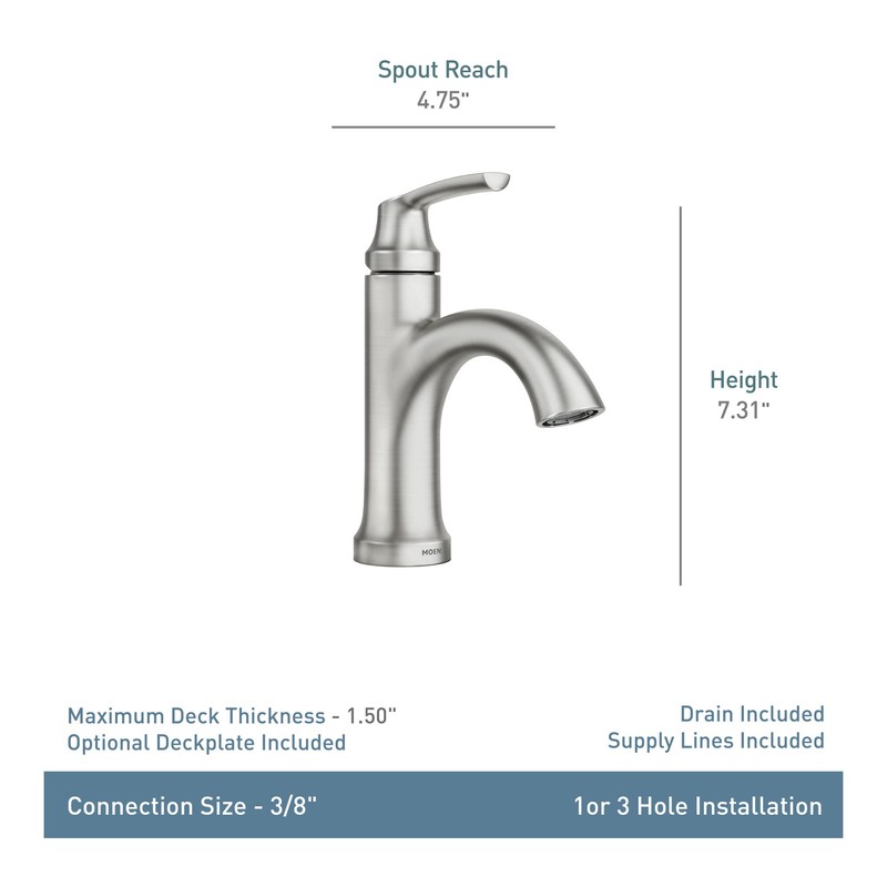 Moen Wellton Single-Handle Spot Resist Brushed Nickel Bathroom Faucet, One Hole Bathroom Sink Faucet with Optional Deck Plate and Drain Assembly, 84980SRN
