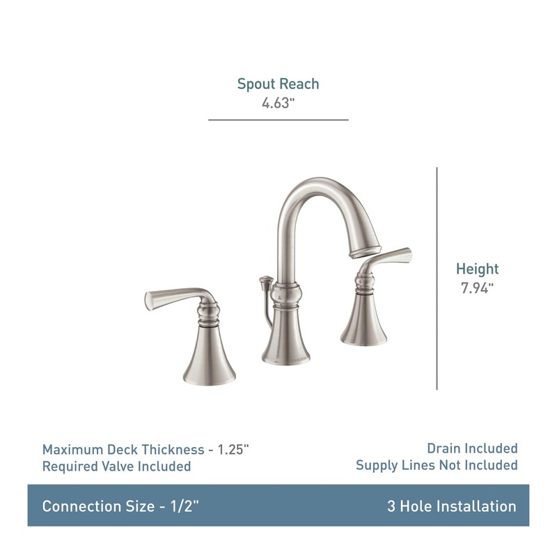 Moen Wetherly Spot Resist Brushed Nickel Two-Handle Widespread Bathroom Faucet with Valve Included, Bathroom Faucets for Sink 3-hole Deck Mounted Setup, WS84855SRN