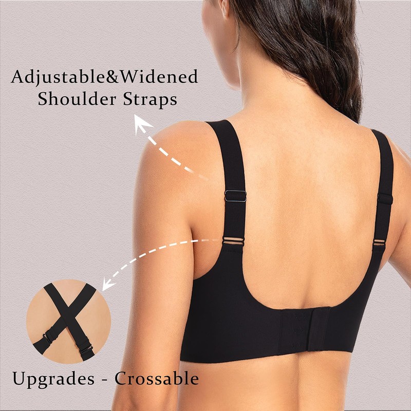 - Adjustable and crossable bra: This bra for women has wider straps to relieve your shoulders. The adjustable back closure makes it more flexible and adapts to different body shapes. The straps can be worn crisscross giving the wearer a second fashionable option to make a statement.