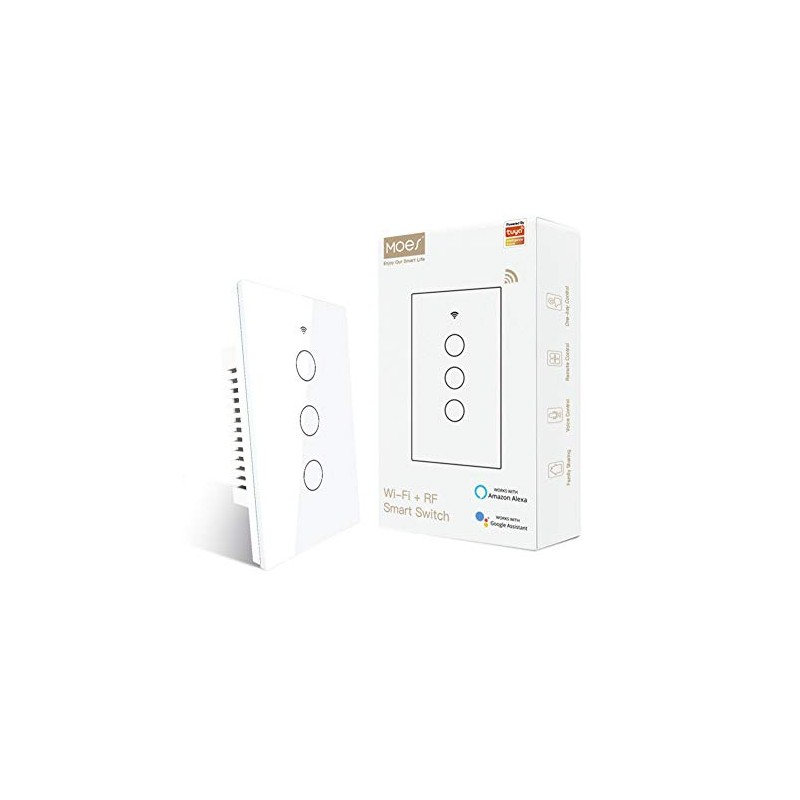 MOES 2.4GHz WiFi Wall Touch Smart Switch Neutral Wire Required, 3 Way Multi-Control, Glass Panel Light Switch Work with Smart Life/Tuya App, RF433 Remote Control, Alexa and Google Home White 3 Gang