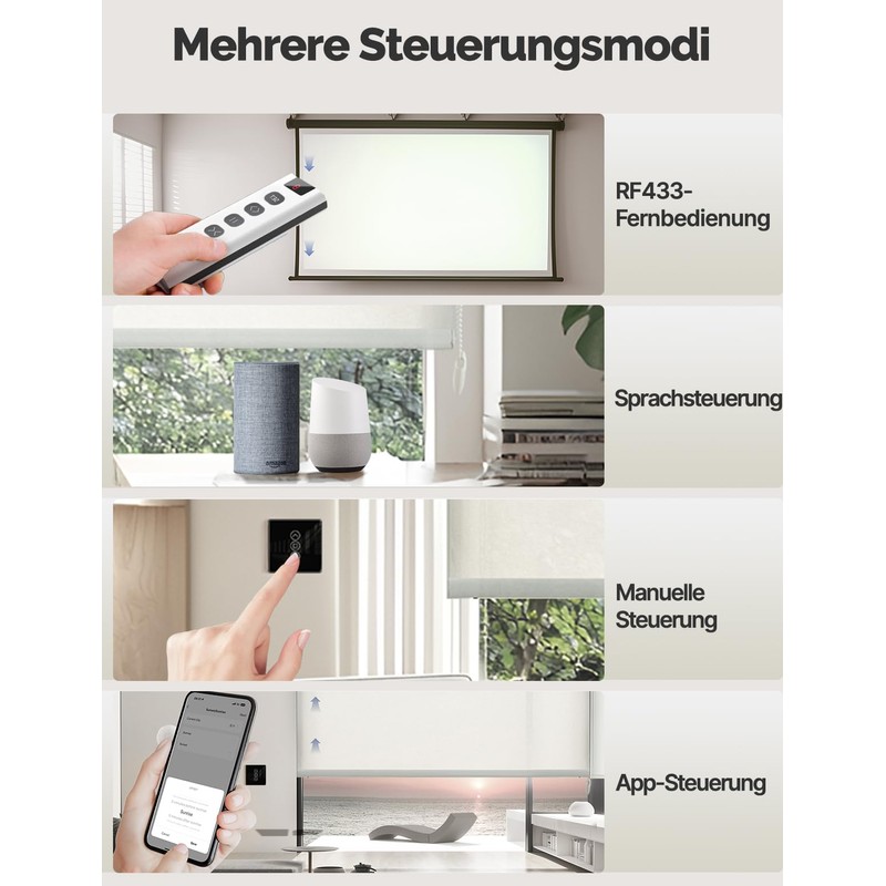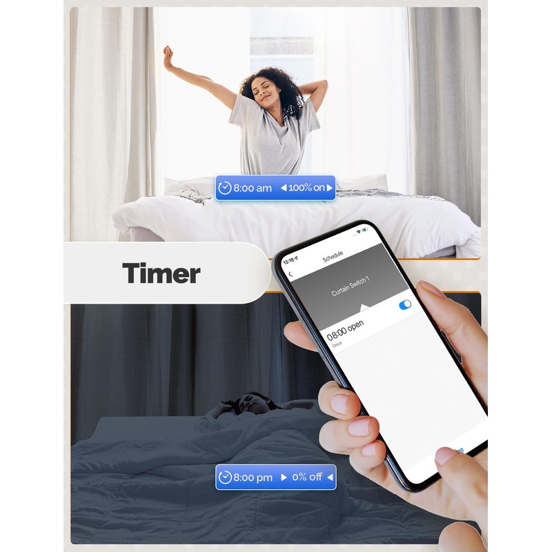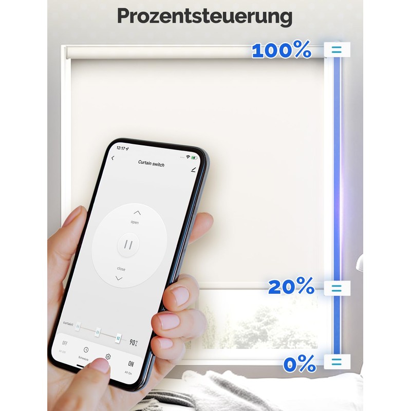 • 2. With voice control, you can easily control your curtains via Alexa or Google Assistant. Just say "Alexa, open curtains by 15%" or "close curtains by 10%" - for easy and quick operation without the touch of a button.