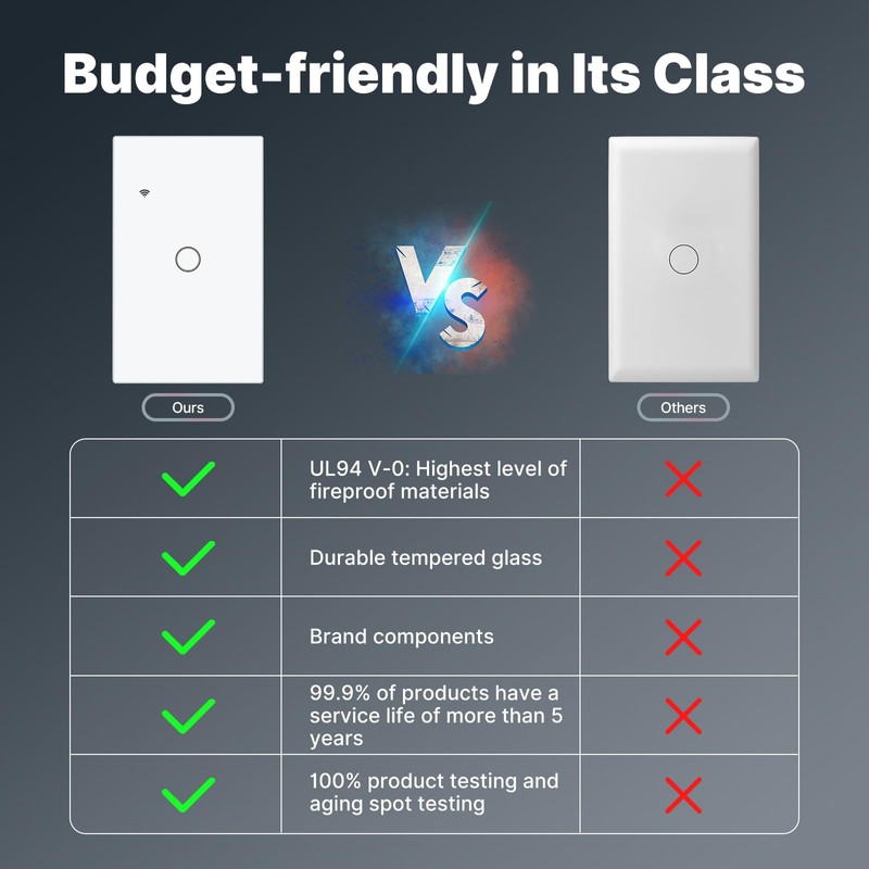 - 【Flexible Wiring Options】Easily installed with or without a neutral wire, this switch offers maximum flexibility for any home wiring setup. Built with fire-retardant materials and advanced no electric arc technology, it ensures safe and reliable operation, blending seamlessly with any wall design.