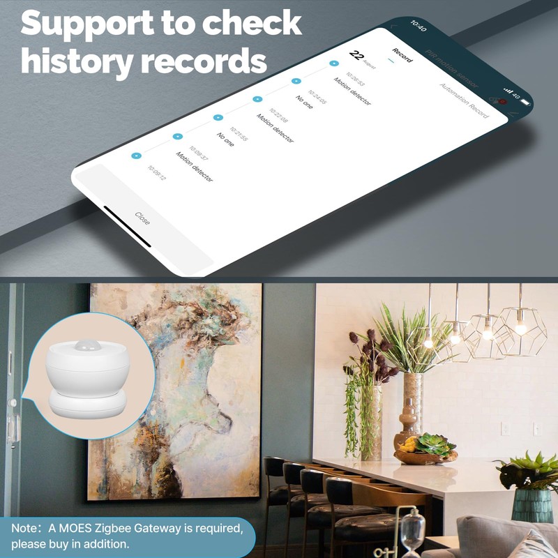 - 【Unauthorized Entry Detectiong】 Whenever unexpected motion is detected, the MOES Motion Sensor will send an alert to your phone.You can even track the history of sensor activities with App supported.