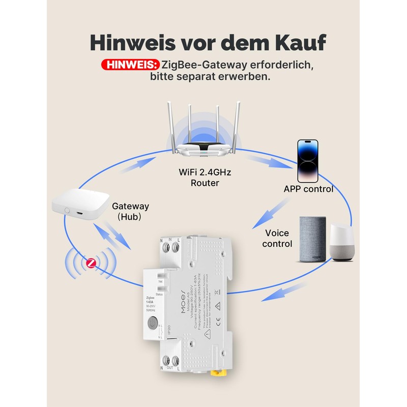 - Voice and app control: remote control via Moes/Smart Life/Tuya app or voice commands with Amazon Alexa and Google Assistant. Note: Moes/Tuya Zigbee gateway required