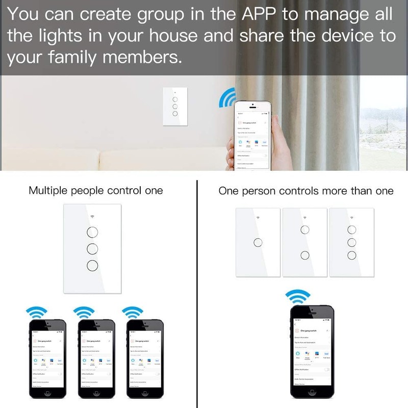 - 2.【Non-interference control mode】Allows the switch to be controlled via app, touch control, voice control, and RF433 remote control with encoding 1527 (RF433 remote not included in package); each control method works independently.