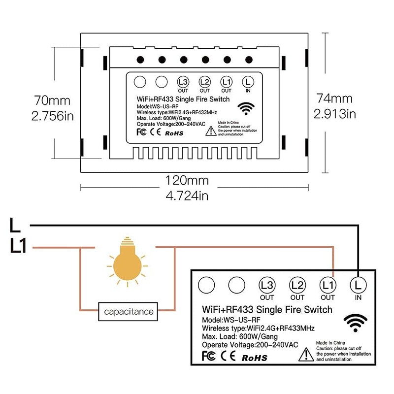 - 1.【Note】No neutral wire required and only for single pole circuit; the wattage of the lamp must be greater than 5w. Only supports 2.4 GHz network; install the capacitor in the package to work properly.Much easier pairing mode for adding the device with WiFi and Bluetooth connectivity.