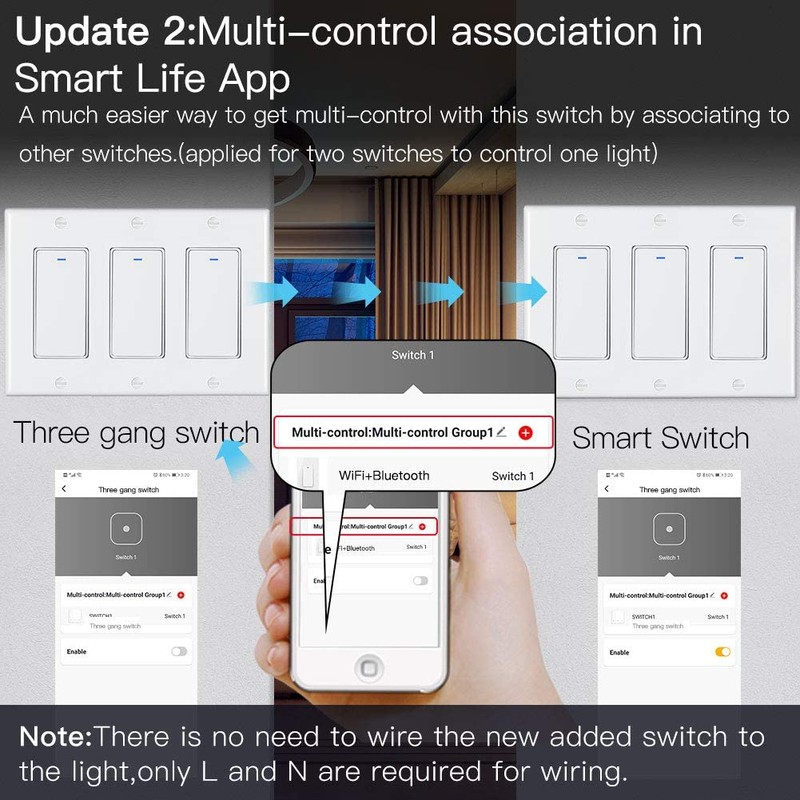 - 【Control from Anywhere】Unlike traditional switches, this smart switch can be controlled via app, touch, voice control, and multi-control as a controlling mode by associating to other smart switches.
