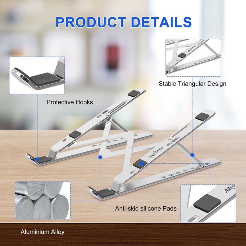 - [Height adjustable] This laptop bracket has 7 adjustable heights from 15 degrees to 45 degrees, which can meet your different height requirements for your laptop. The higher the adjustment, the better the cooling effect of this laptop bracket.