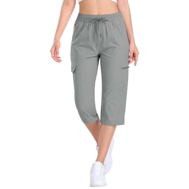MoFiz Ladies Capri Hiking Pants Lightweight Quick Dry Outdoor Athletic Travel Casual Loose Comfy Cute Pockets Grey X-Large