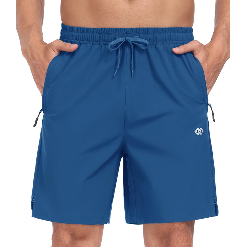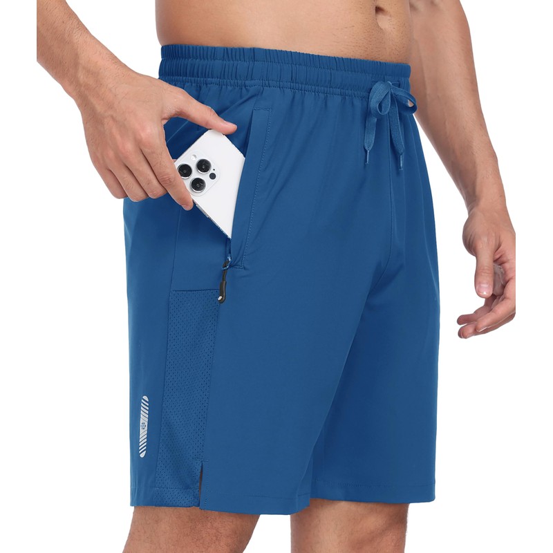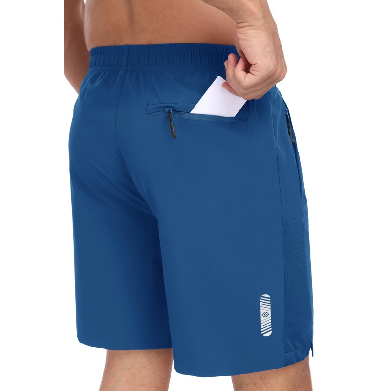 MoFiz Men's Athletic Short with Zipper Pocket Gym Exercise Training Jogger Outdoor Hiking Running Short Blue,M