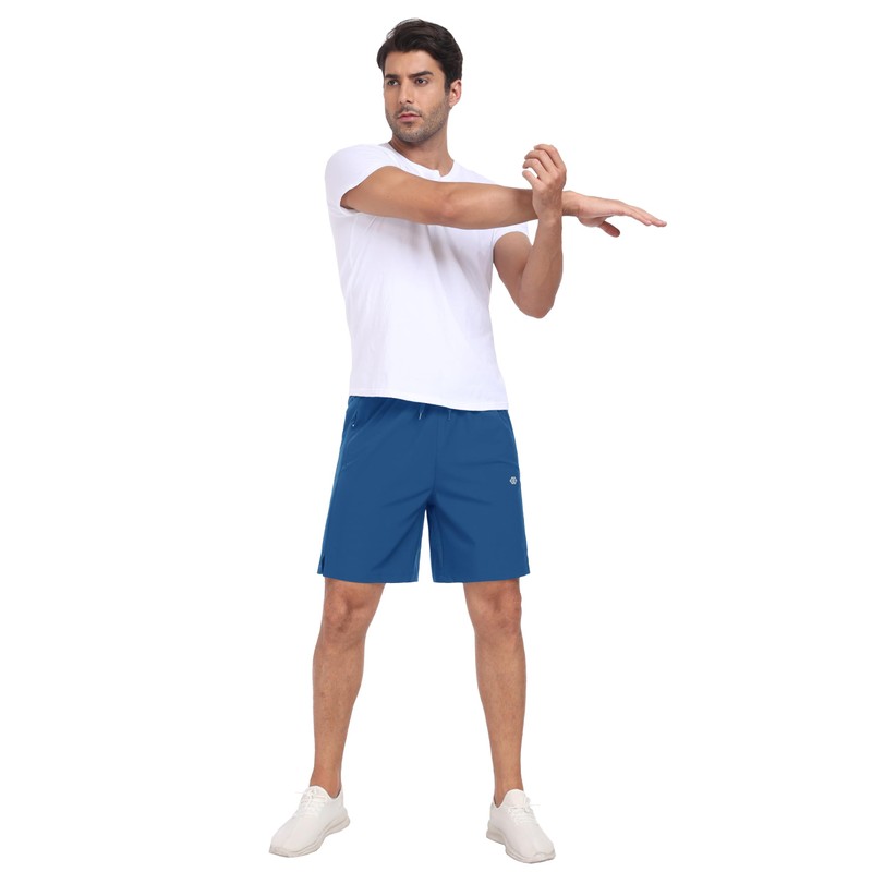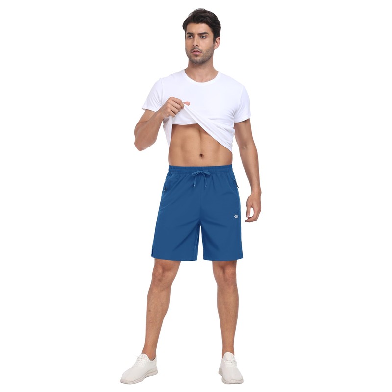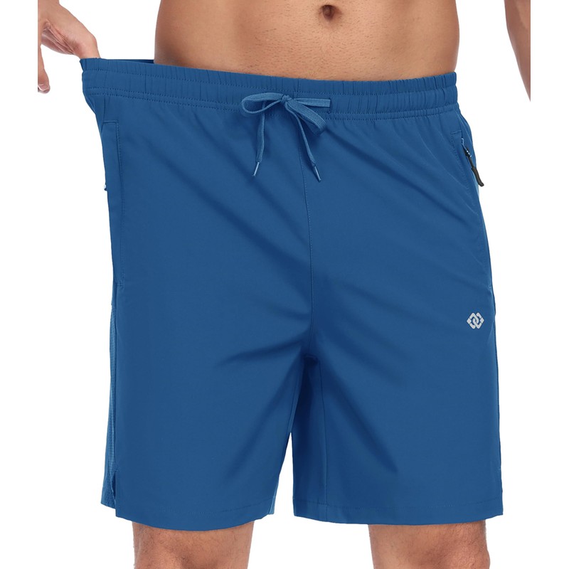MoFiz Men's Athletic Short with Zipper Pocket Gym Exercise Training Jogger Outdoor Hiking Running Short Blue,XL