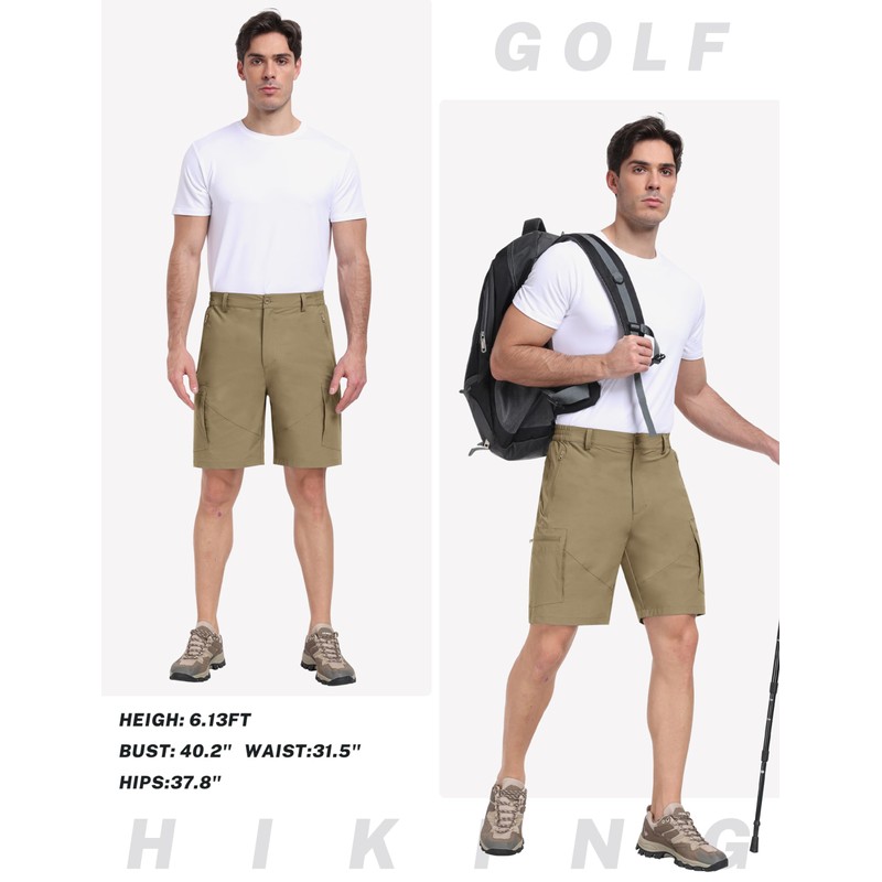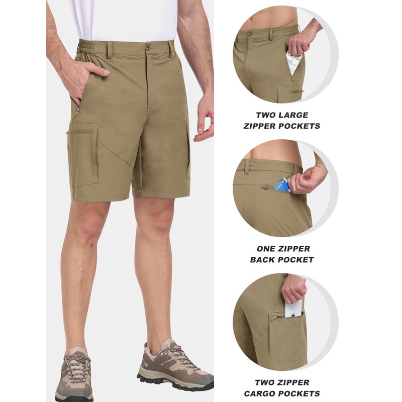 MoFiz Men's Casual Cargo Shorts Summer Combat Work Shorts with Zip Pockets Khaki US M=EU L