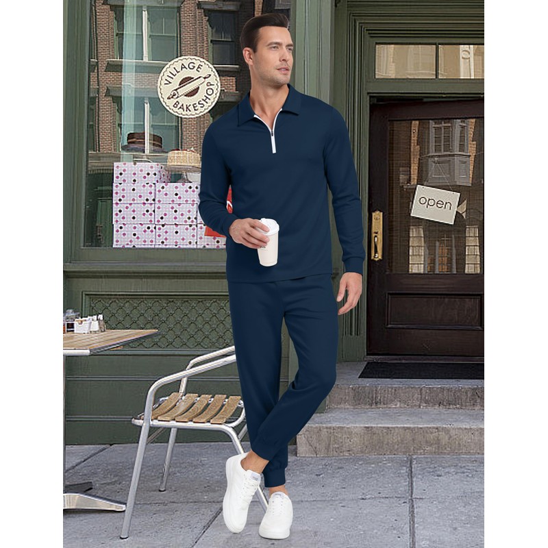 MoFiz Men's Track Suit Set 1/4 Zip Long Sleeve Jogging Top Bottom Casual Tracksuit Outfits Drawstring Elastic Waist with Pockets