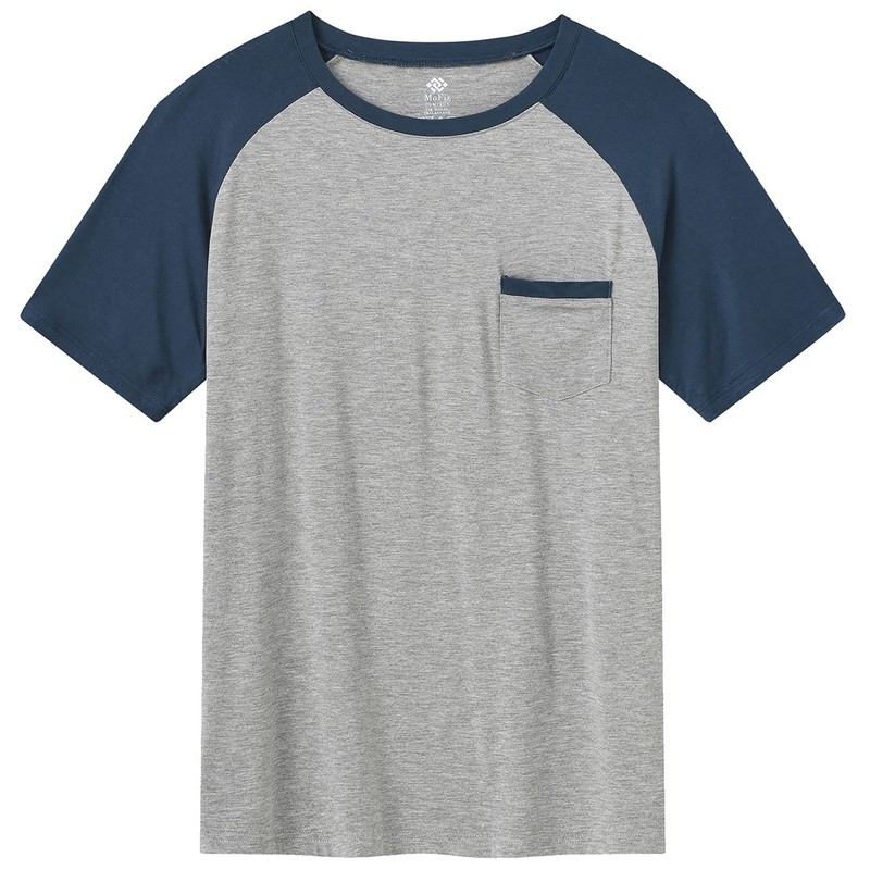 - Pajama Design :Men short sleeve pjs set top with crew-neck design, chest pocket and features contrasting sitches on the neck and shorts, bottoms with Drawstring and two sides pockets. MoFiz men pjs set is new Product in the sleepwear product.