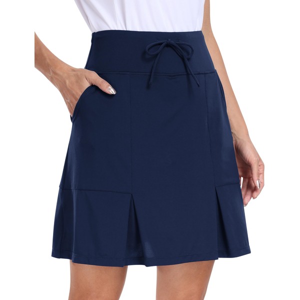 MoFiz Skorts Skirts for Women with 3 Pockets 20" Knee Length Golf Skirt Modest Long Tennis Athletic Skirts for Women Navy Blue XL