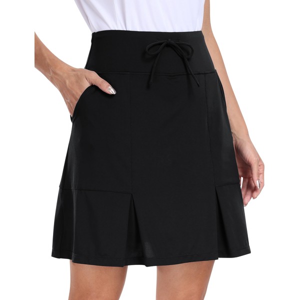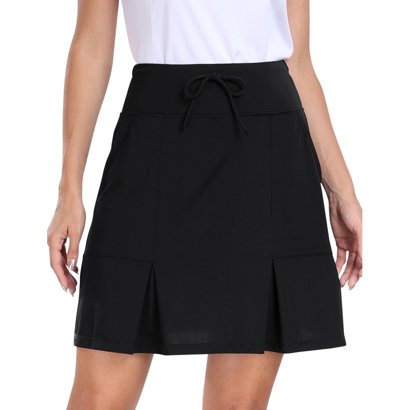 - [High Waisted & Drawstring] The golf skort designed with high waisted elastic drawstring wasitband for a comfortable fit. 2 side pockets & 1 back pocket for storing your phone, scorecard and balls.