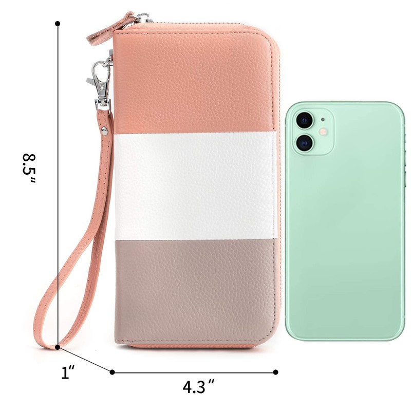 Moflycom Womens Wallet RFID Blocking Genuine Leather Multi Credit Card Large Capacity Zip Around Clutch Travel Purse Wristlet, Pink/White/Grey, L, Rfid Wallet