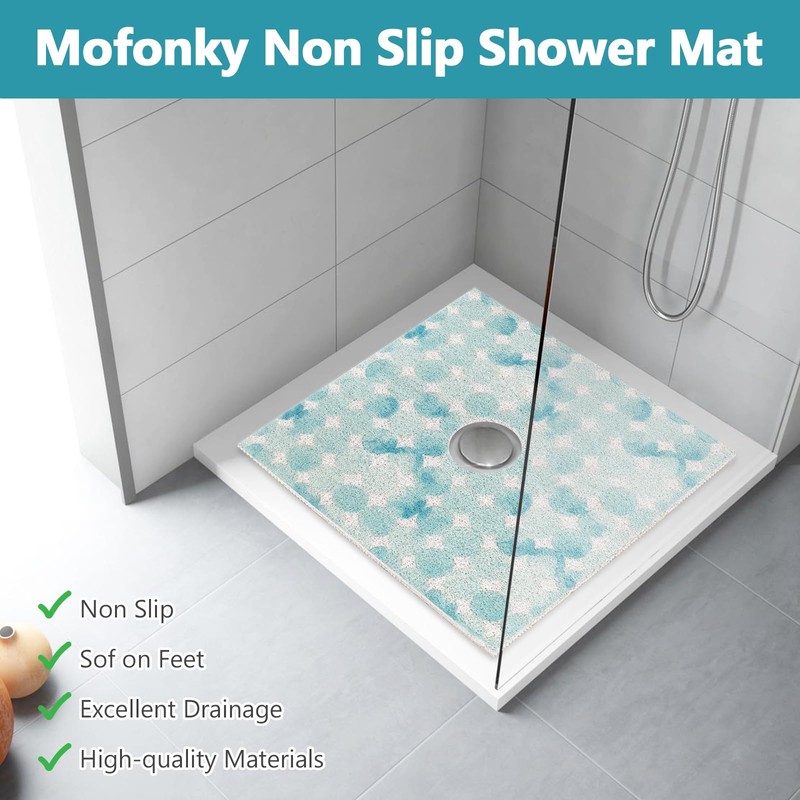 Mofonky Shower Mat Non Slip: 24 x 24 Inch Shower Mats for Inside Shower - Square Anti Slip Shower Matt for Elderly